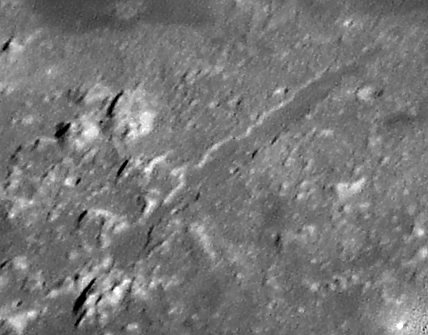 Extra contrast to reveal the 620 meters (0.35") wide rille running through the valley