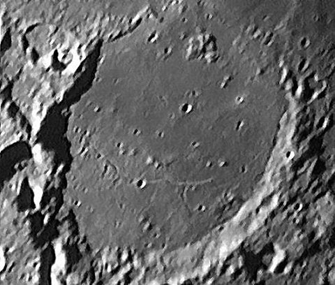 Extra contrast to reveal the 620 meters (0.35") wide rille running through the valley